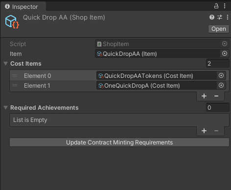 However, it quickly became a pain (not to mention a potential source for bugs) to keep the minting requirements defined in the Scriptable Objects in sync with the minting requirements defined in our BurnToMint contract on-chain.
