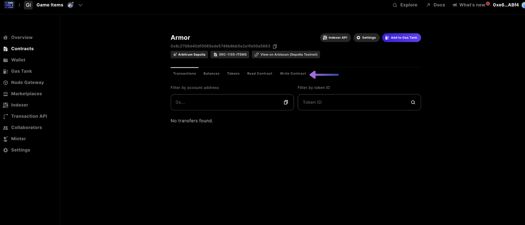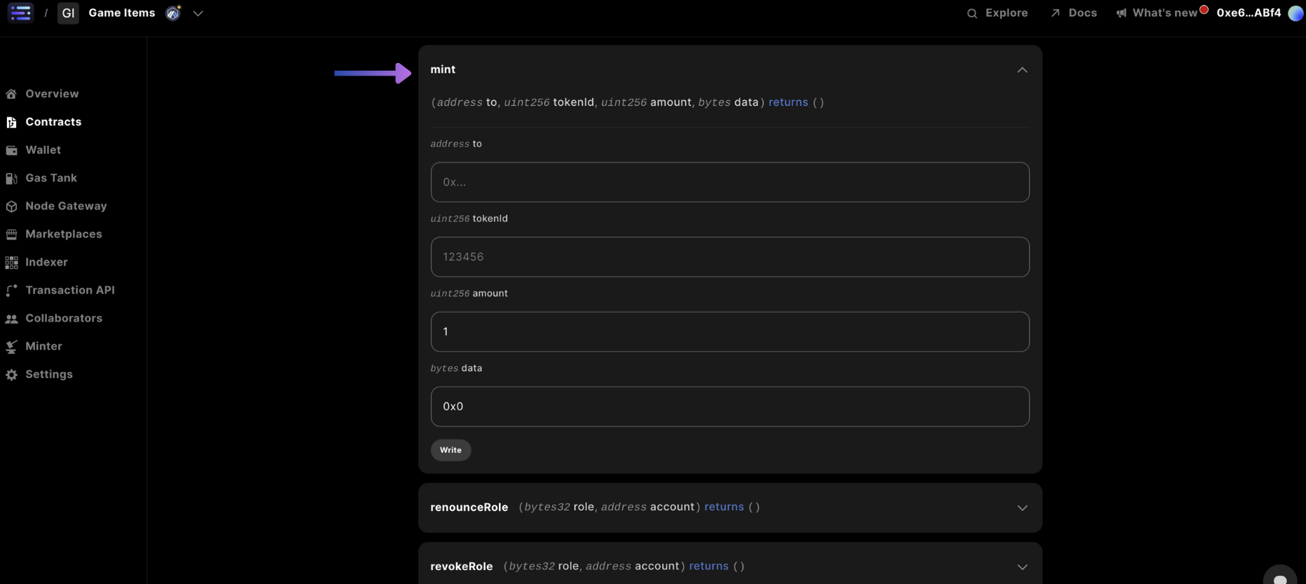 Next, head to the Write Contract section